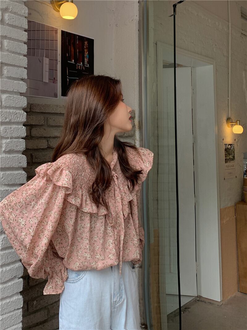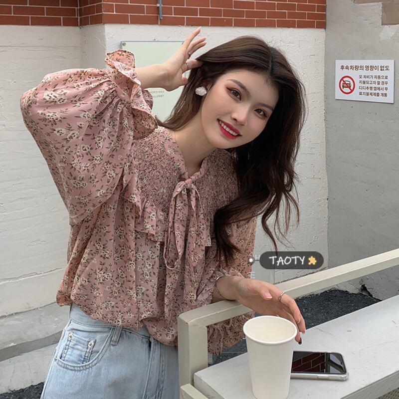 スプリングトップス スタイルシャツ フローラルシフォン 大人ガーリー スウィート キュート カジュアル 春物 花柄 タオタオイ99732171808