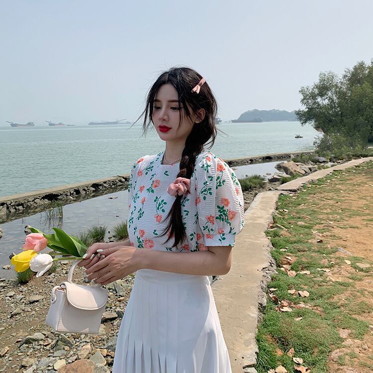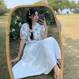 フローラルスリーブシャツ レディーススタンダードサマートップス レトロ 夏物 花柄 タオタオイ28524002386