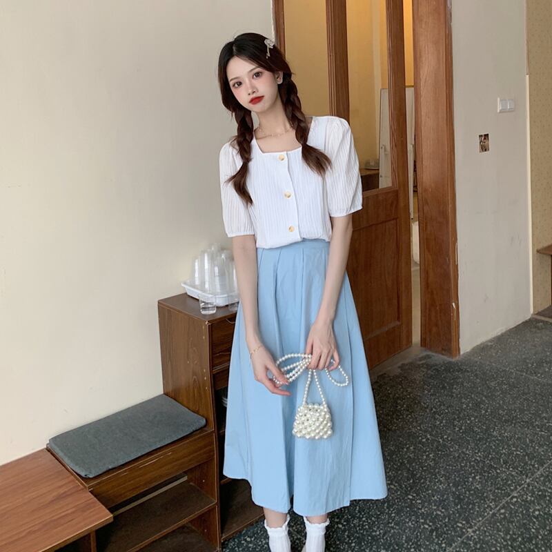 サマースリーブシャツ ハイウェストウェストスカート スタイルレッド 夏物 タオタオイ87701694477