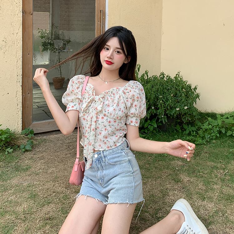 フローラルショートシャツ レディースサマートップス 夏物 花柄 タオタオイ45189236266