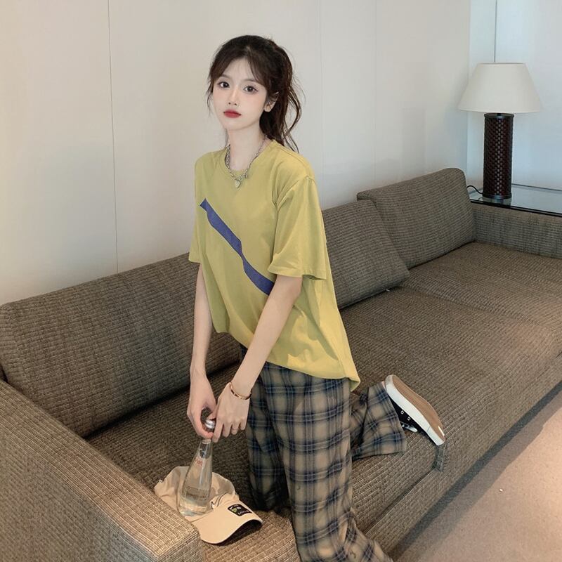 色:パープル半袖ワンピース,ブルー半袖ワンピース,緑の半袖ワンピース,ピンク半袖ワンピース,黒と白のチェックパンツワンピース,シングルチェック柄パンツ