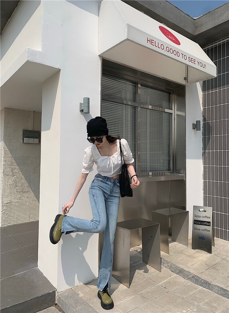 ジーンズ サマーハイウェストスリムパンツ スタイル 夏物 タオタオイ85078904583