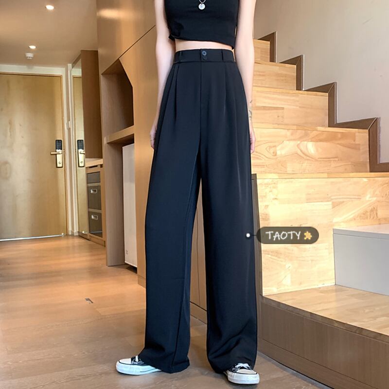 ブラックパンツ レディースルーズサマーハイウェストウェストワイドレッグカジュアル 夏物 ワイドパンツ タオタオイ60560221661