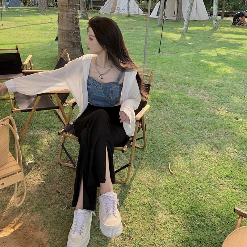 色:スプリットパンツワンピース,白いシャツのワンピース,デニムストラップワンピース