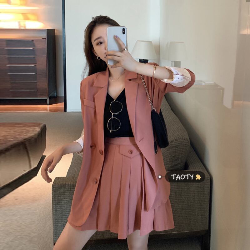 サマージャケット Aラインプリーツスカート レッド 夏物 タオタオイ98810035604