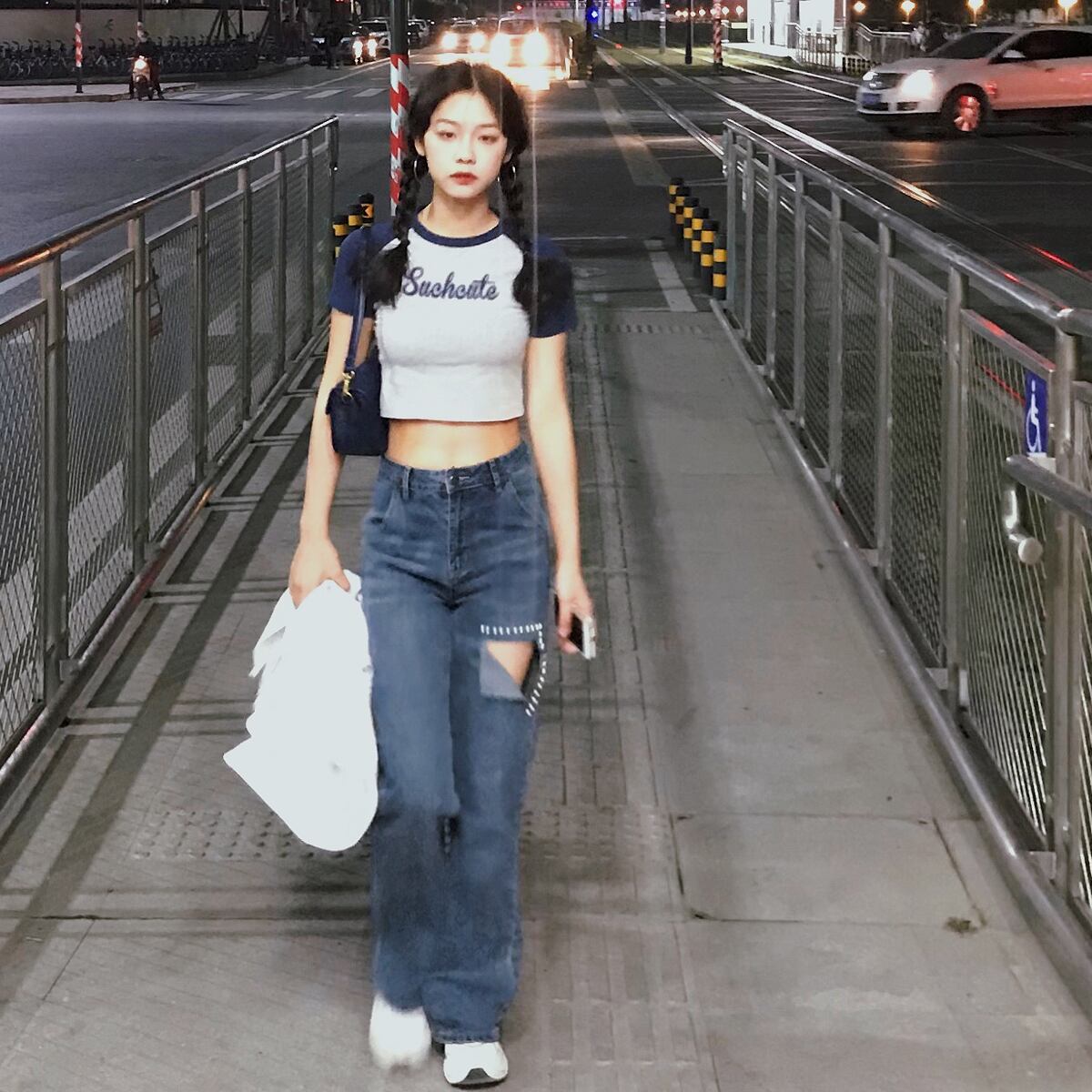 ジーンズ ルーズサマーハイウェスト薄手パンツ 夏物 タオタオイ17088833357