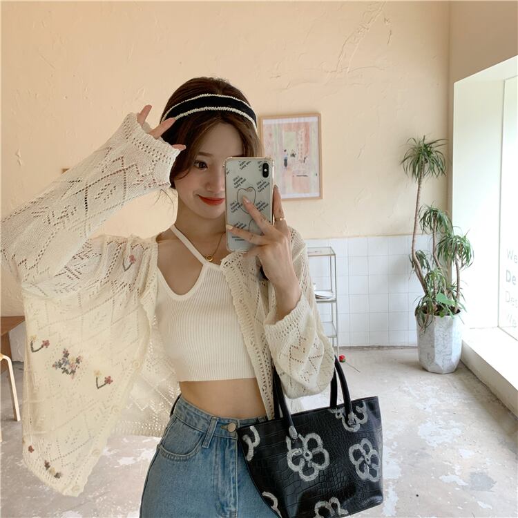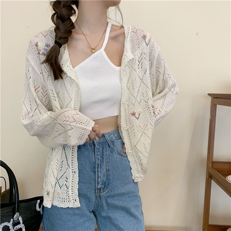 スタンダード薄手ニットカーディガンレディースサマースタイルトップス ロング レトロ 夏物 タオタオイ23707431231