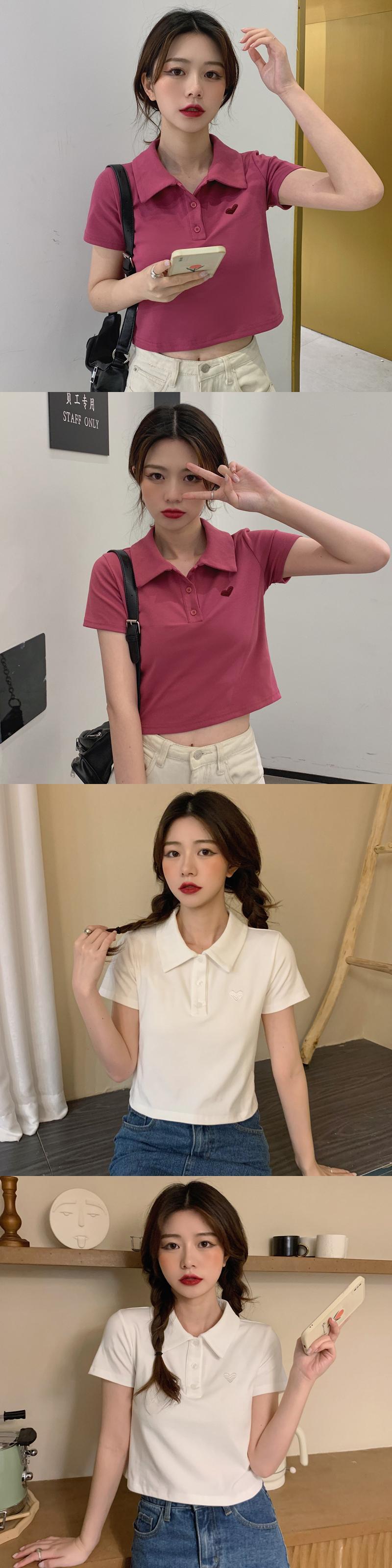 カラーショートTシャツ サマースリムレッド 夏物 タオタオイ17892250262