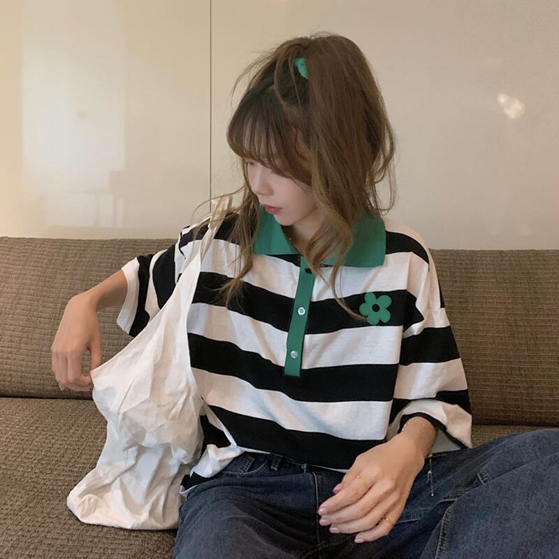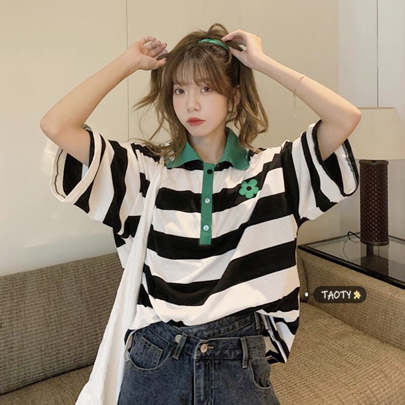 カラーストライプTシャツ サマールーズレッドトップス 夏物 タオタオイ45274161702