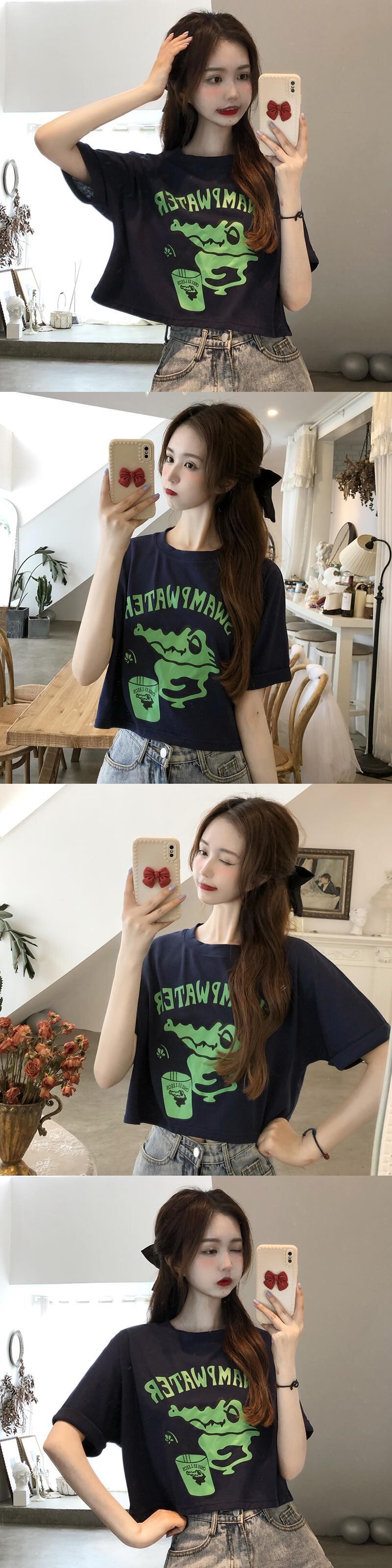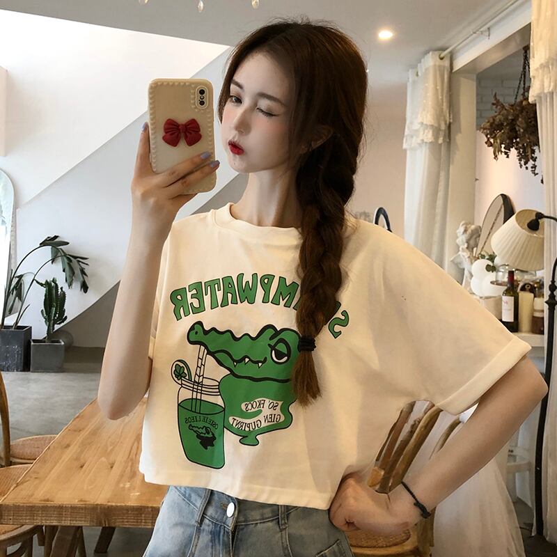 ホワイトショートTシャツ サマーレッドスタイルルーズトップス 夏物 タオタオイ14805228156