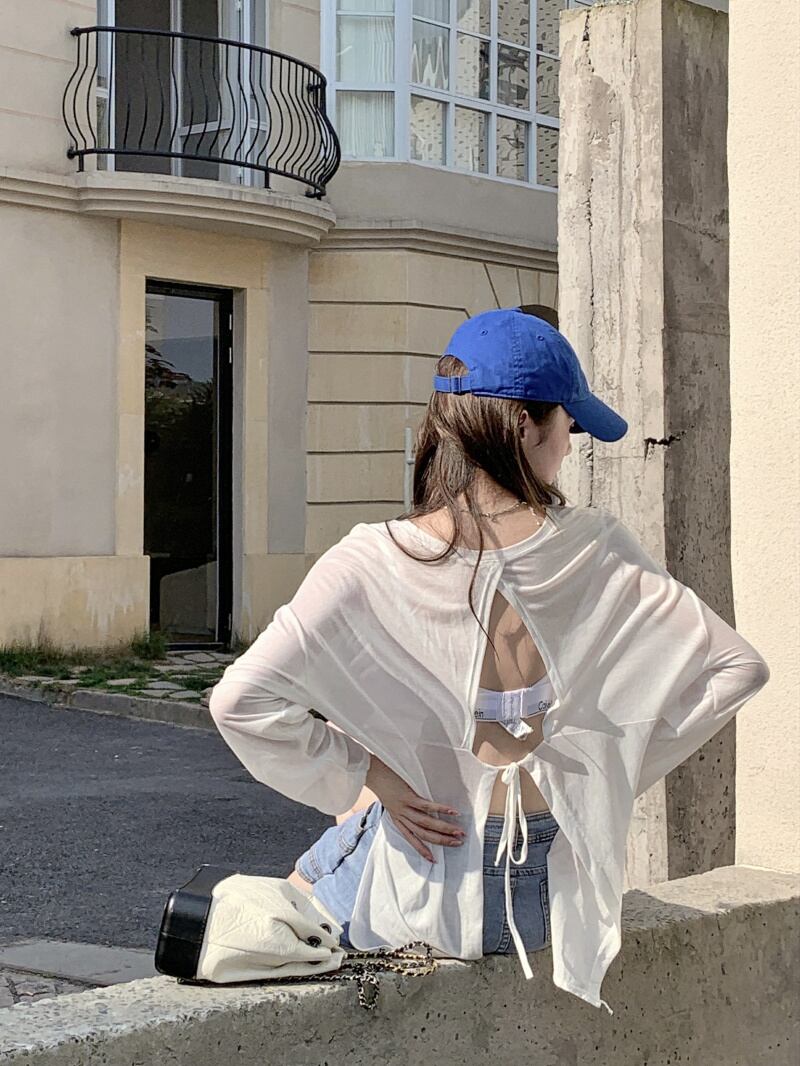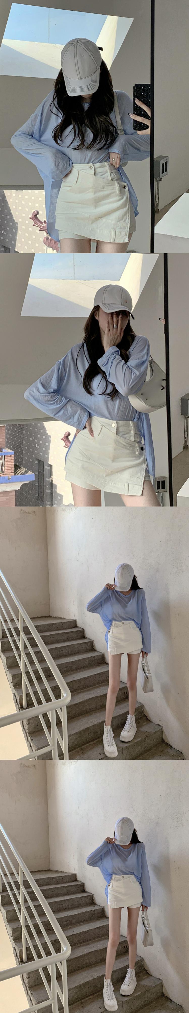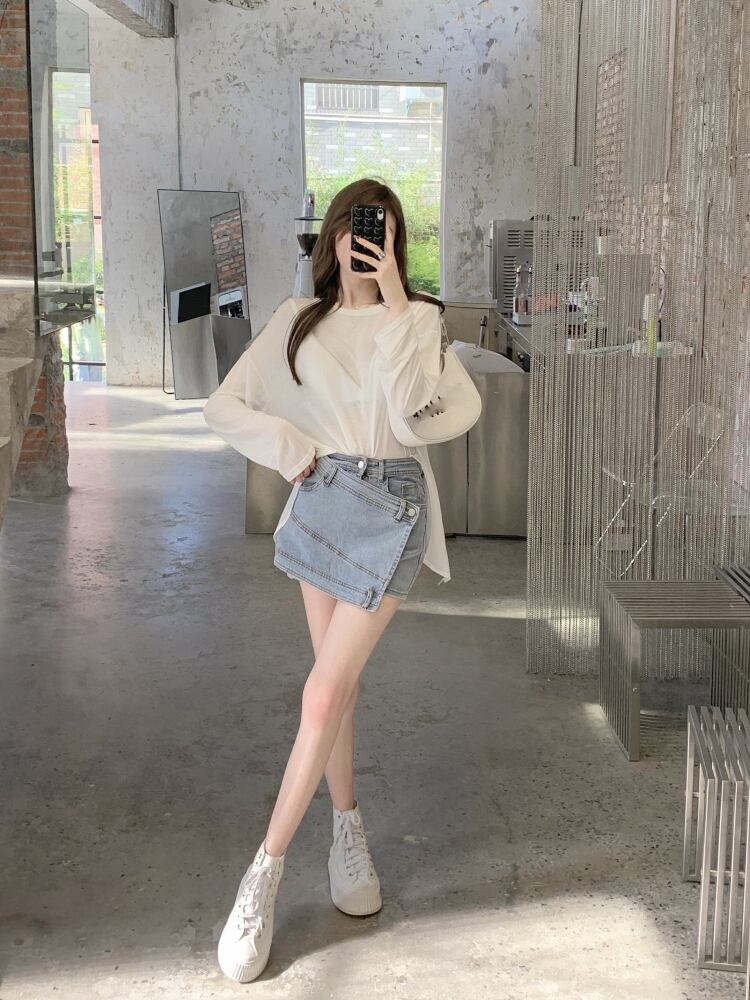 ホワイト薄手レディースサマートップス ロング 夏物 タオタオイ20279023096
