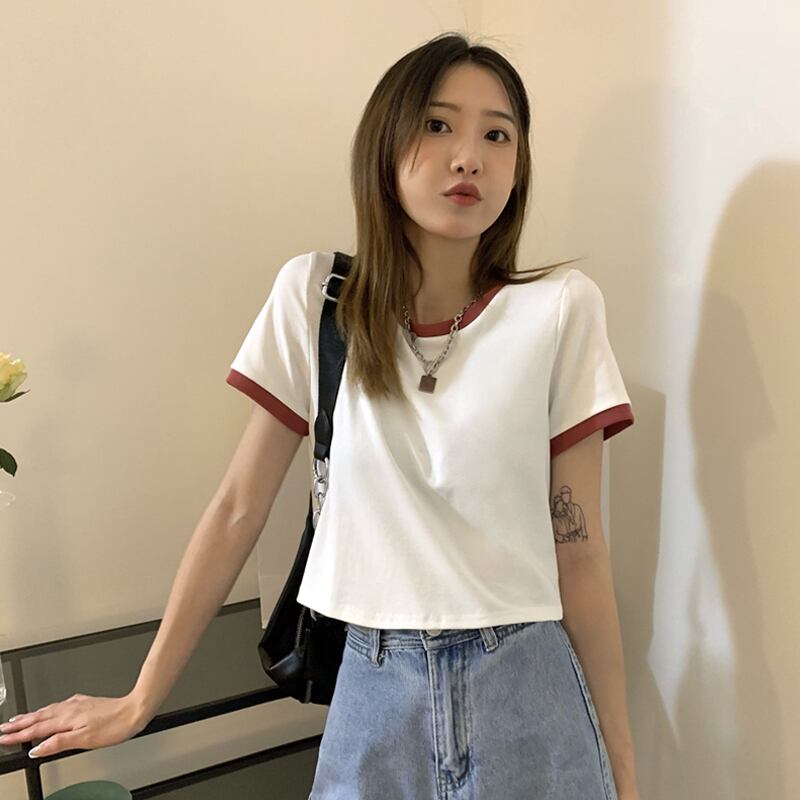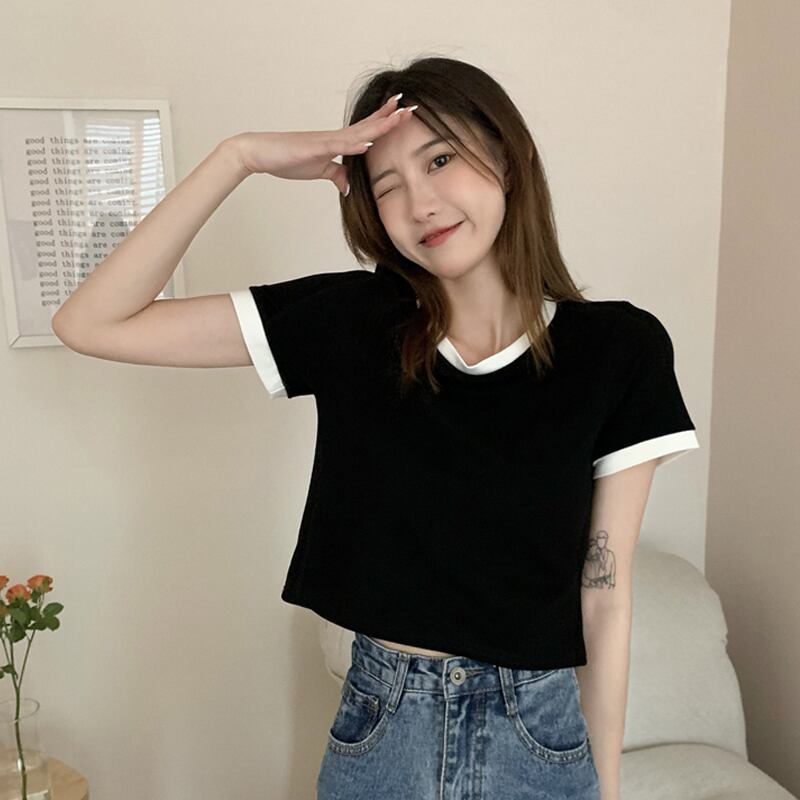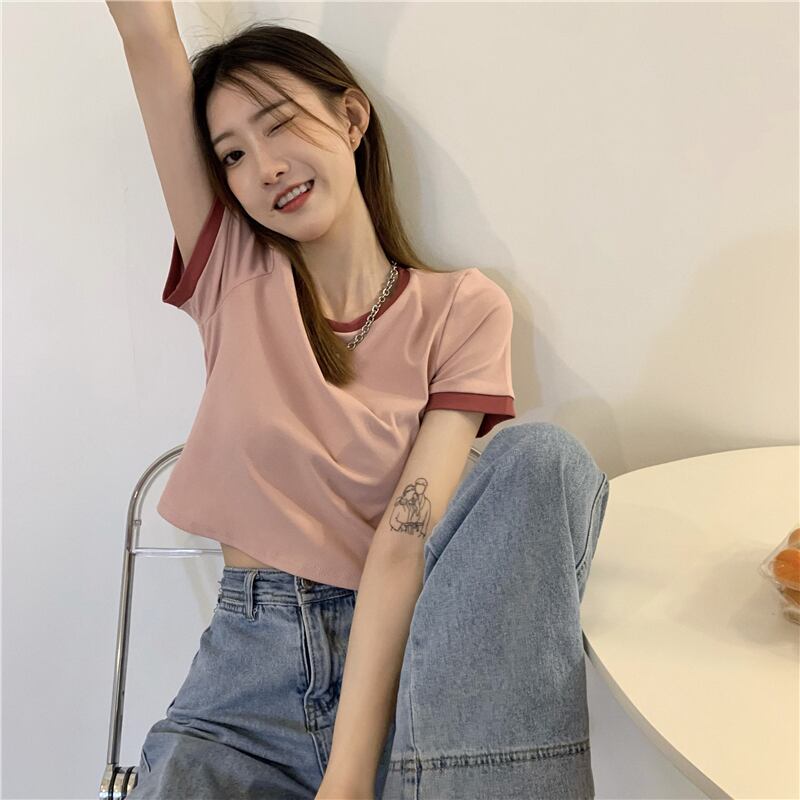 ショートTシャツ サマーハイウェスト ピンク 大人ガーリー スウィート キュート カジュアル 夏物 タオタオイ58748424975
