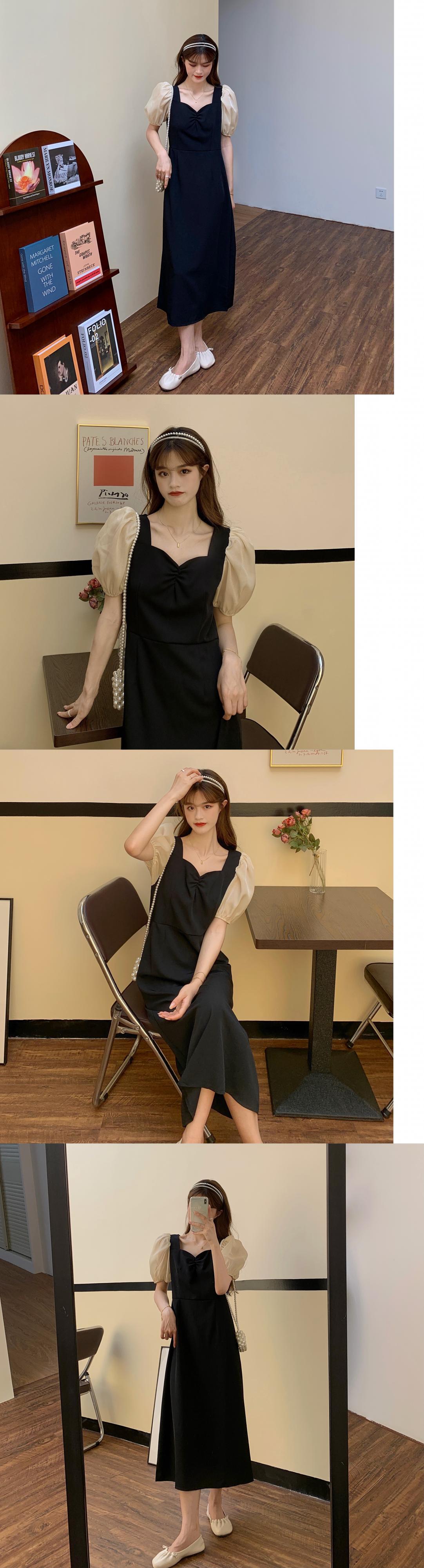 メッシュスリーブドレス サマースタンダードロングスカート レトロ 夏物 タオタオイ66488979122