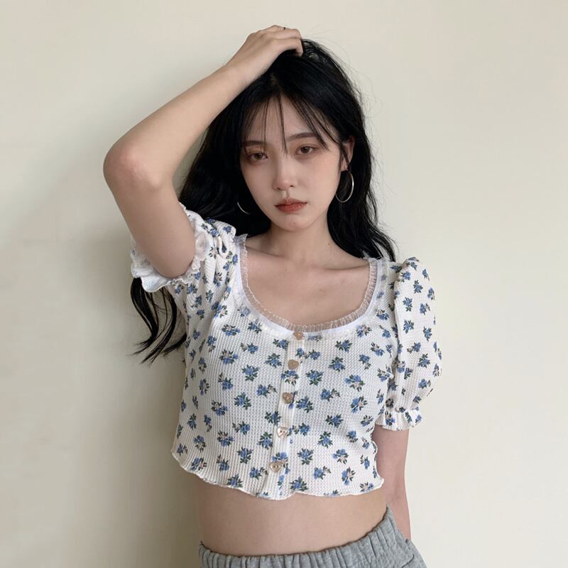 フローラルショートTシャツ サマーレッドカラートップス ドレス 夏物 花柄 スクウェア タオタオイ26407169471