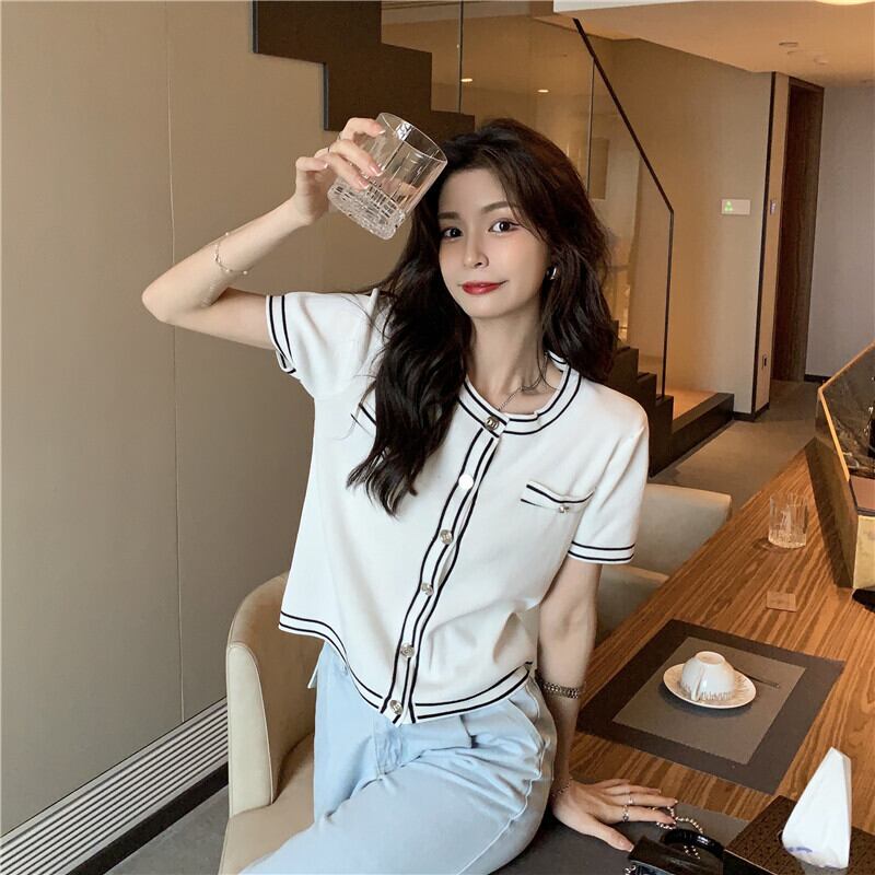 ホワイトショートセーター 薄手サマースタイルトップス カーディガン 夏物 タオタオイ16275337814
