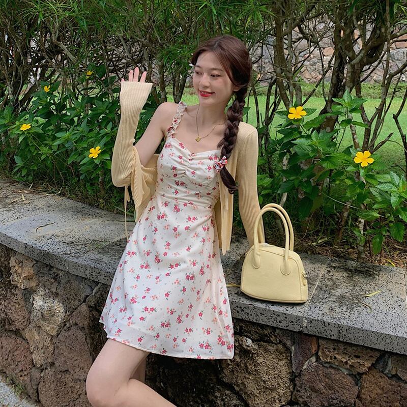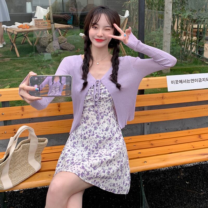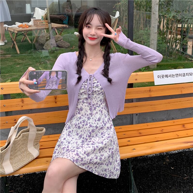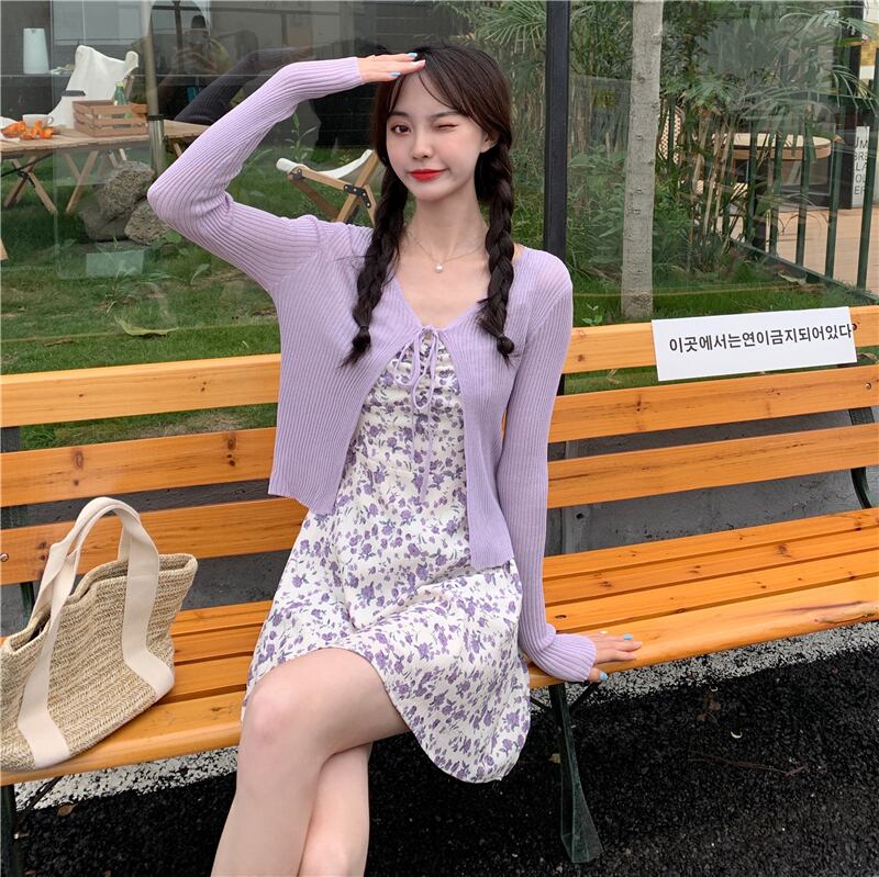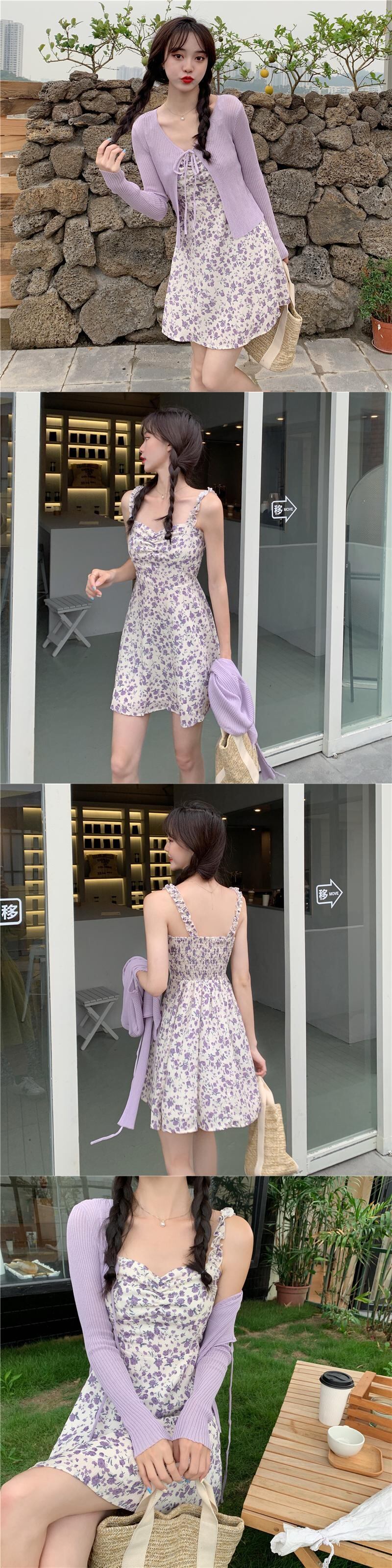 色:パープルカーディガンワンピース,黄色のカーディガンワンピース,紫のサスペンダースカートワンピース,黄色いキャミソールのワンピース