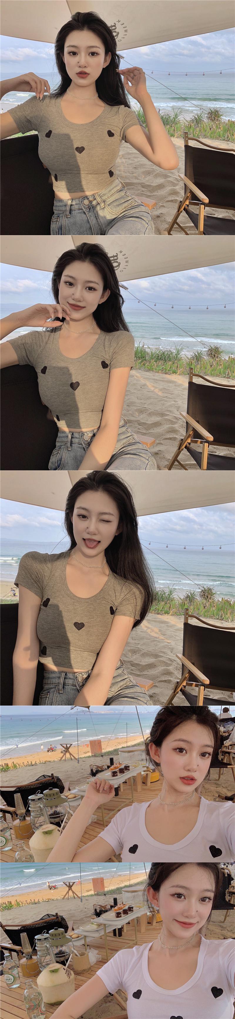 スタンダードショートTシャツ サマースリムトップス レトロ 夏物 タオタオイ23905310712