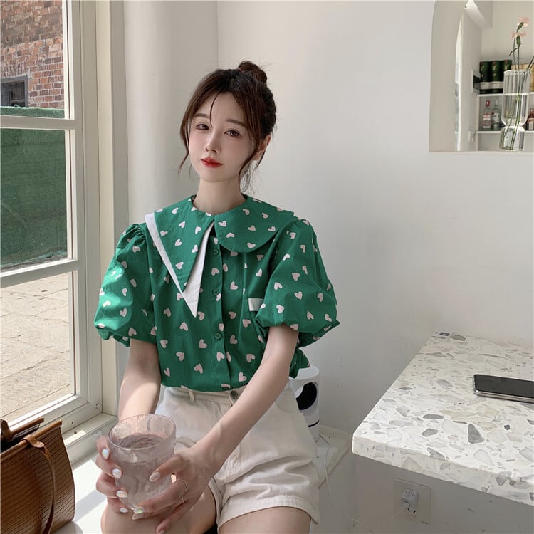カラーシャツ サマースリーブトップス 大人ガーリー スウィート キュート カジュアル 夏物 タオタオイ51071810039
