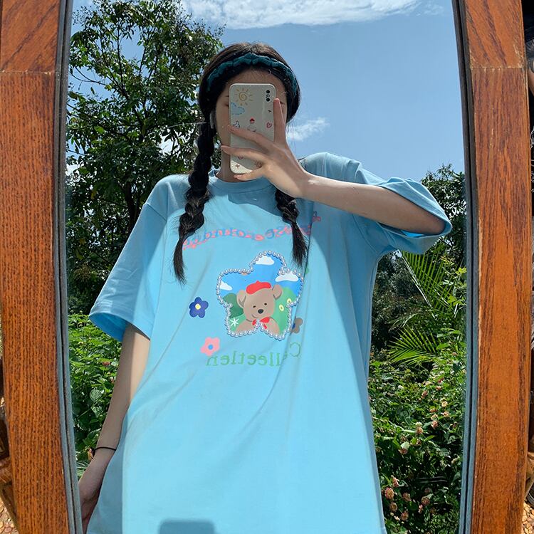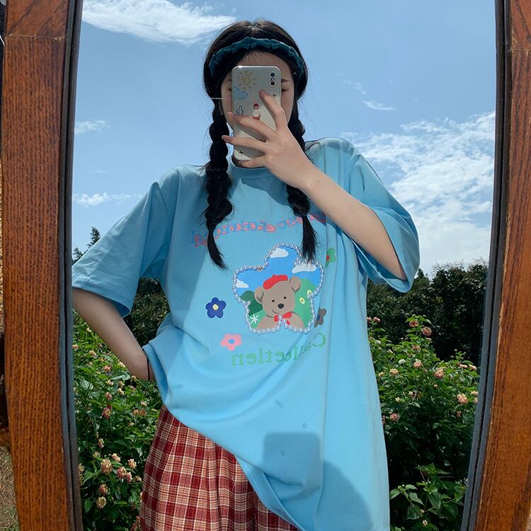 パターンプリントTシャツ サマールーズ薄手トップス 夏物 タオタオイ97875381080