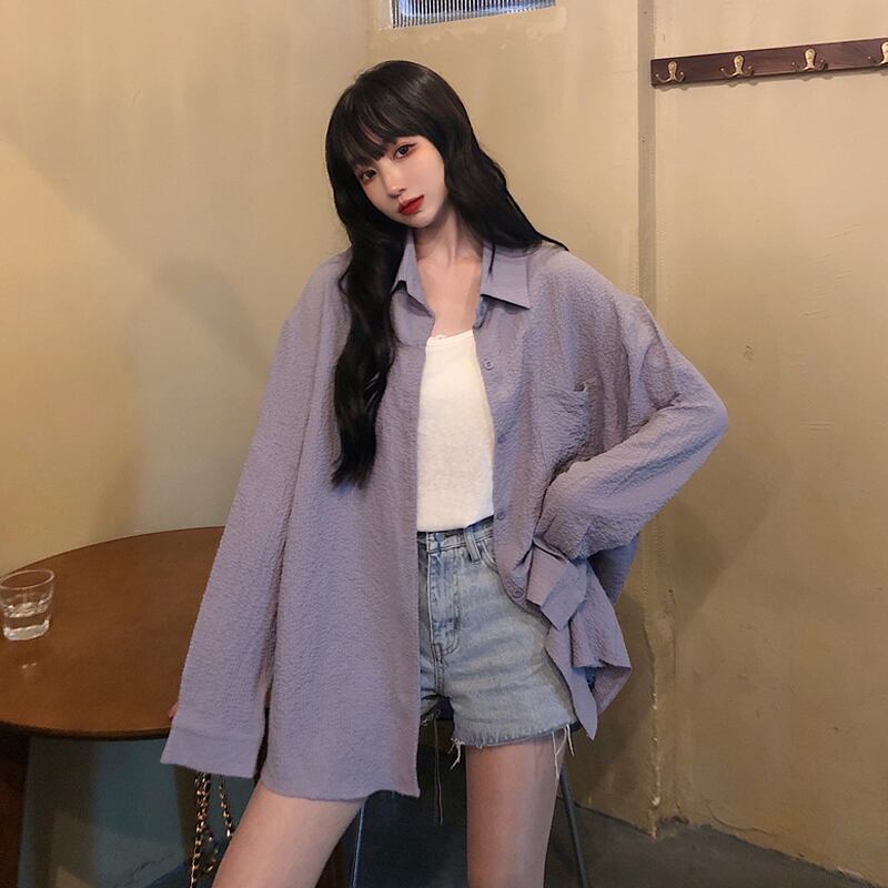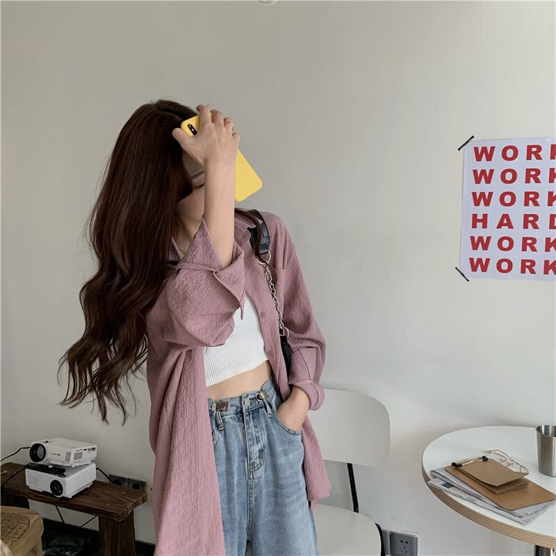 シャツ レディースルーズサマースタンダードレッドトップス ロング ピンク レトロ 夏物 タオタオイ27381792303