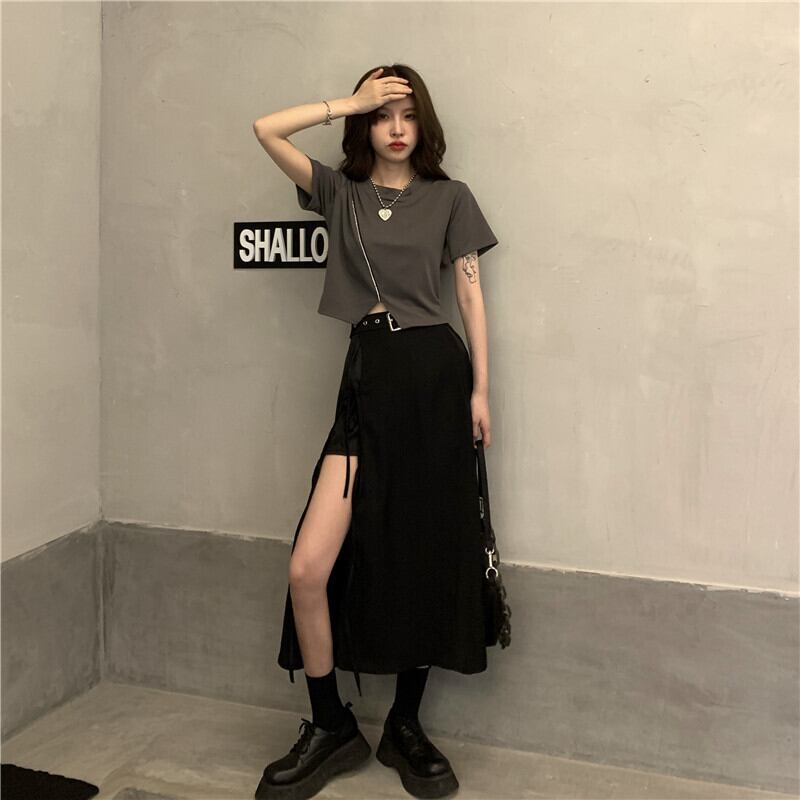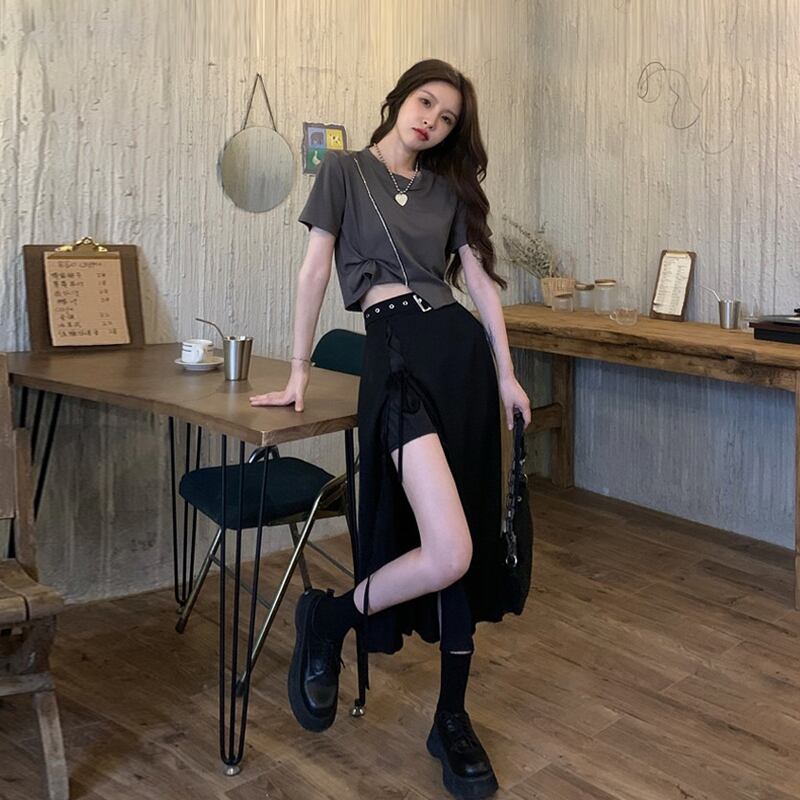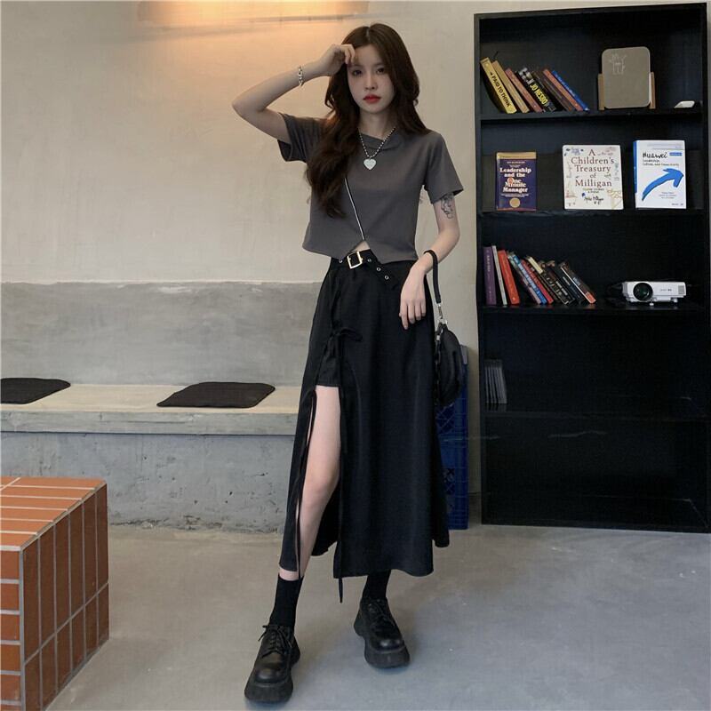 スカート サマーハイウェストウェストAラインブラック 夏物 タオタオイ90602696765