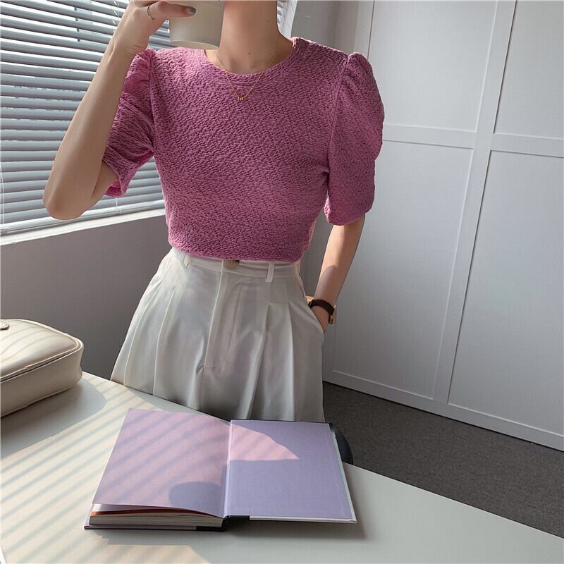 ショートTシャツ 薄手サマースタイルレッドトップス 夏物 パープル タオタオイ28116094189