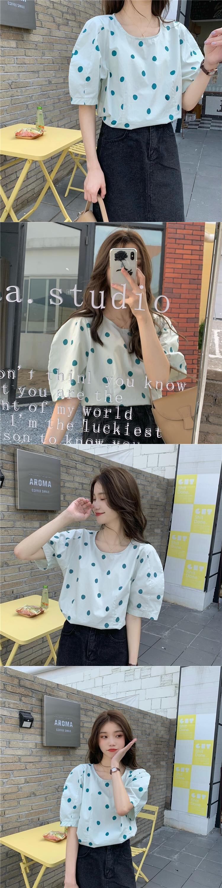 水玉スリーブシャツ レディースサマールーズトップス 夏物 タオタオイ20465087431