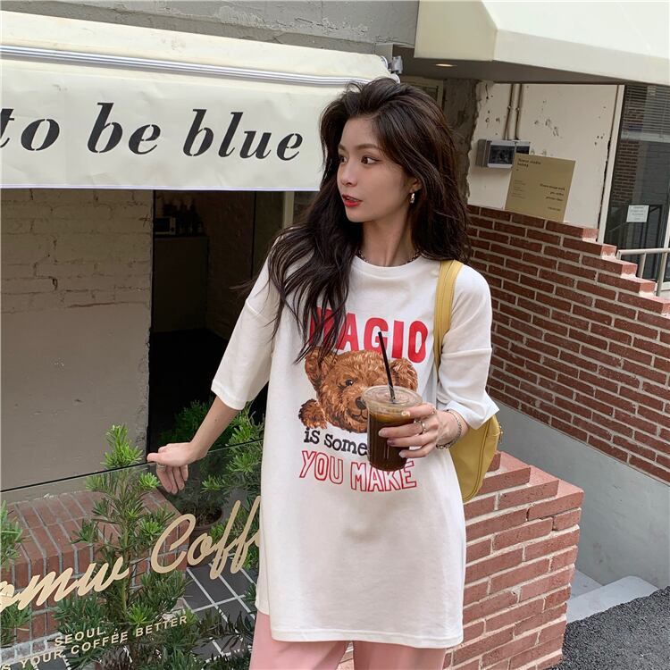 プリント柄Tシャツ サマールーズスタイルトップス 夏物 タオタオイ83509530875