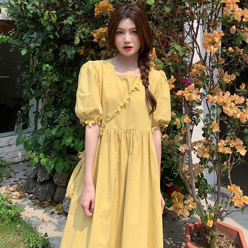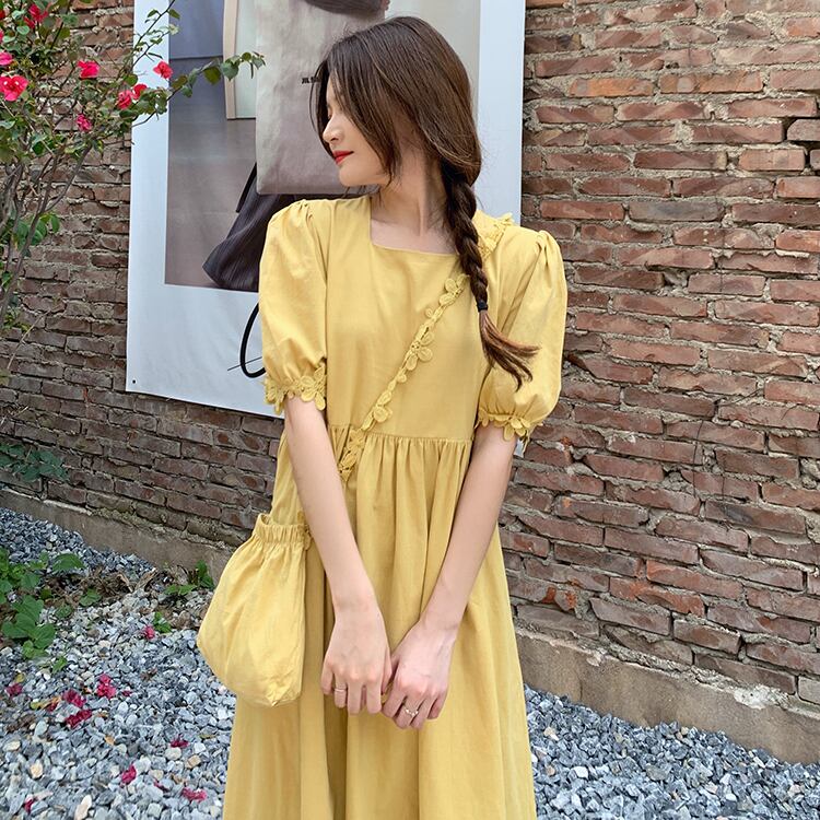スリーブドレス サマーカラースカート 大人ガーリー スウィート キュート カジュアル 夏物 スクウェア タオタオイ52487723066