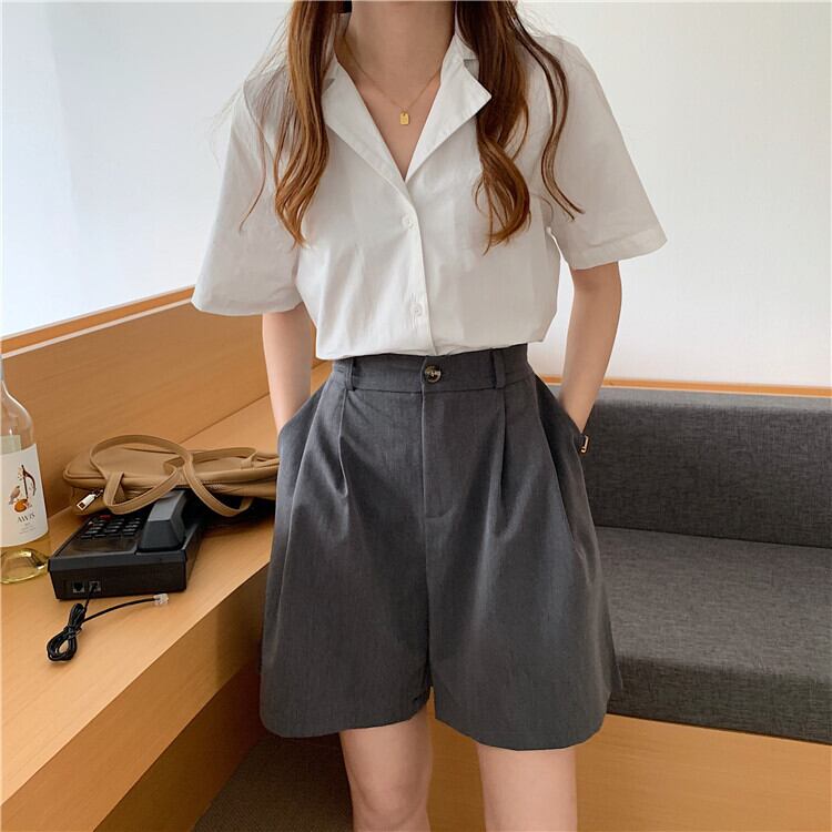グレーショーツ サマー薄手ハイウェストウェストルーズパンツ 夏物 ブルマー タオタオイ31398879573