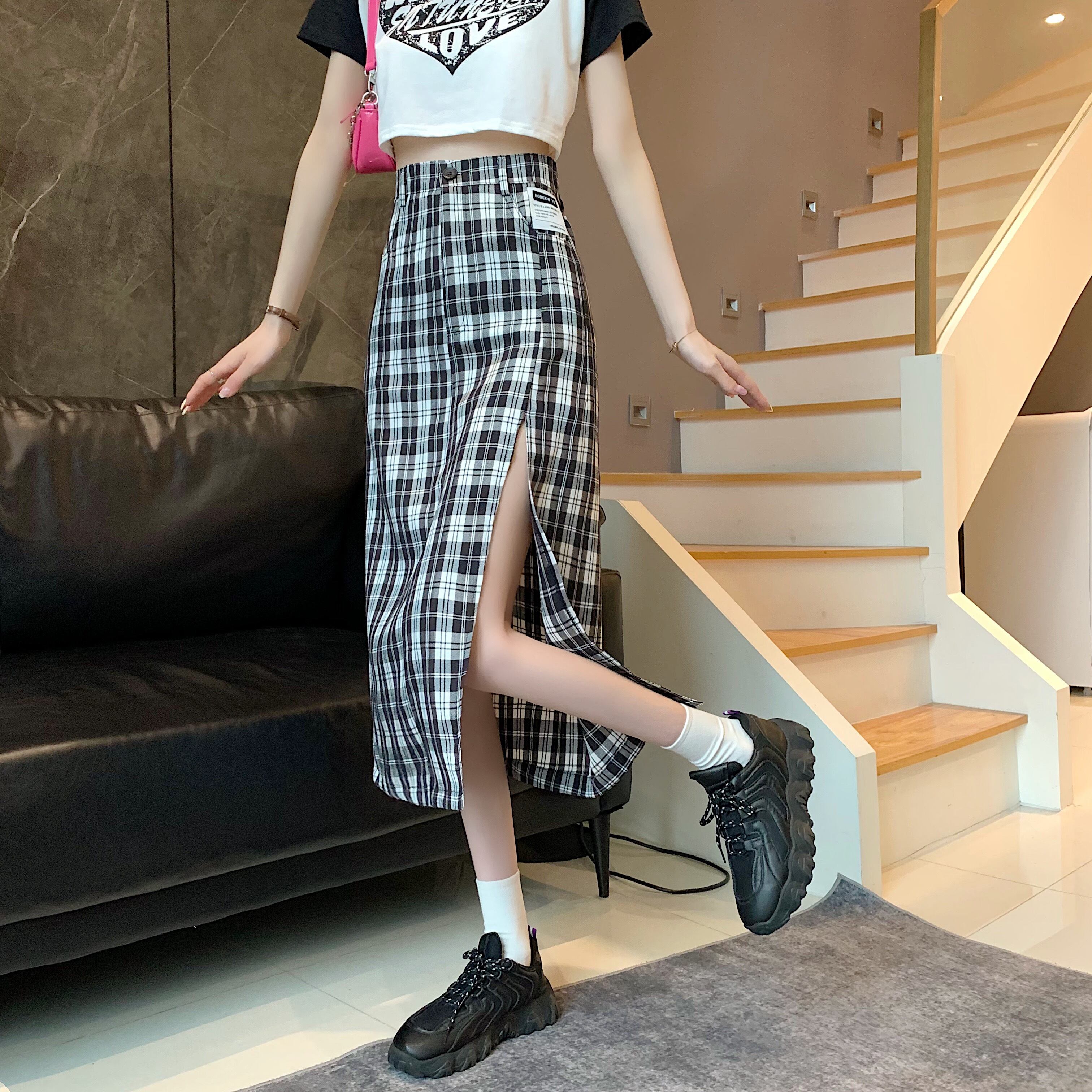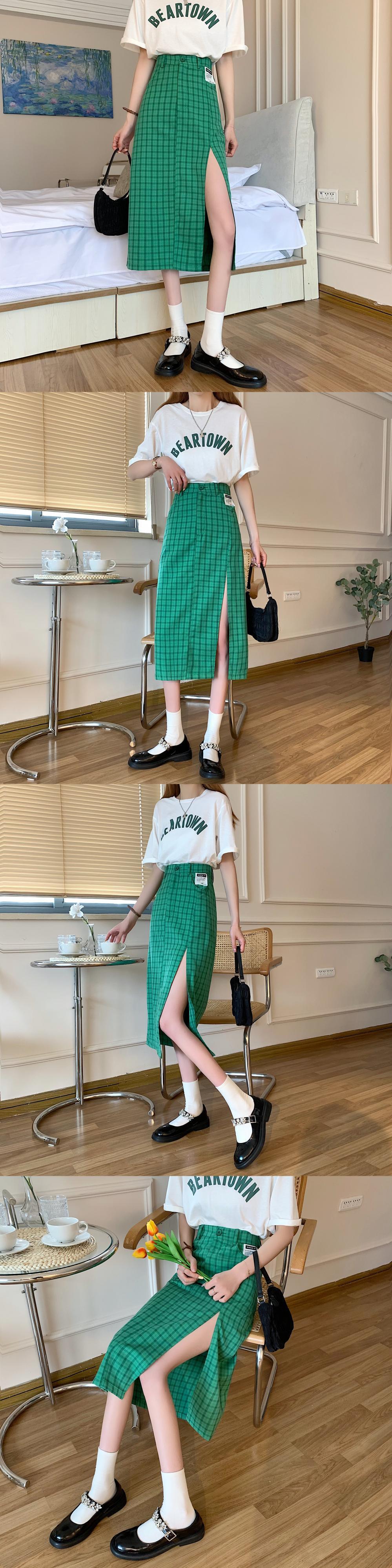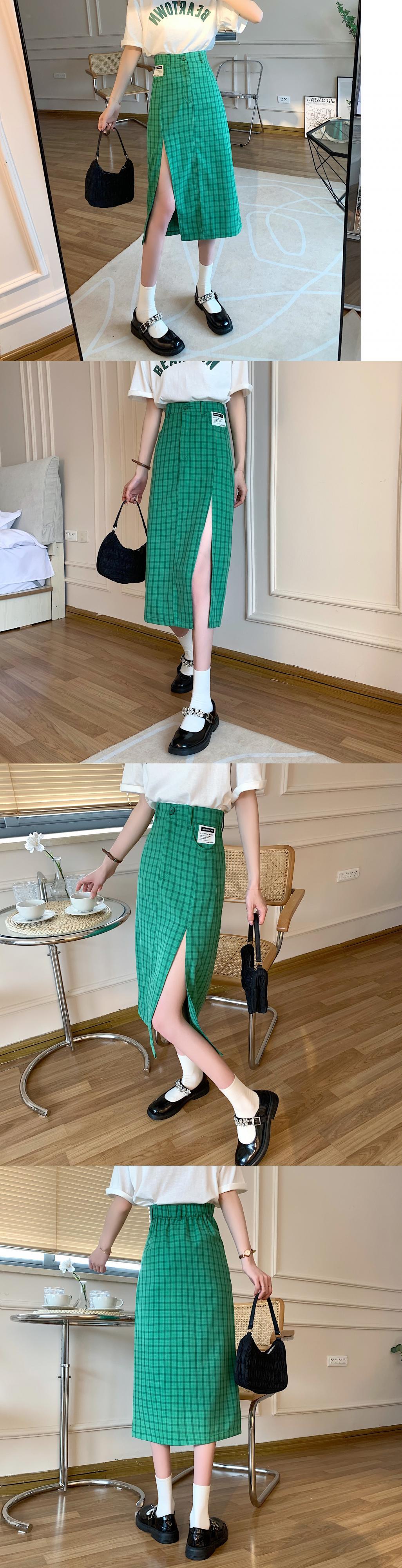 格子柄スカート ハイウェストウェストAラインサマー 夏物 タオタオイ91822185029
