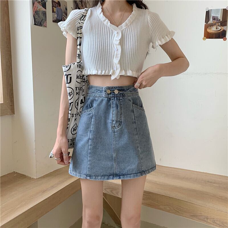 スカート ショートサマーハイウェストウェスト薄手Aライン 夏物 タオタオイ85397176019