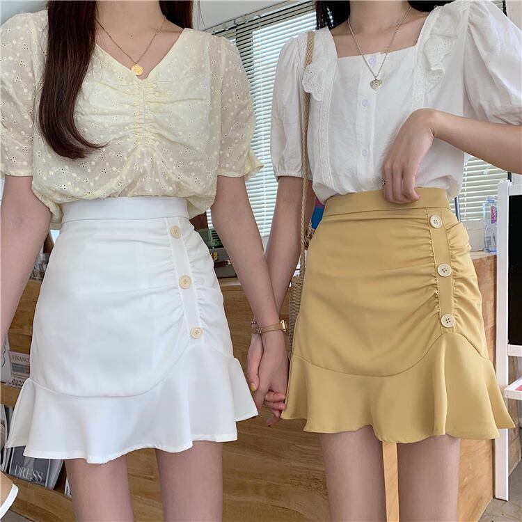 ブラックスカート ショートサマーハイウェストウェスト薄手Aライン 夏物 タオタオイ81286601538