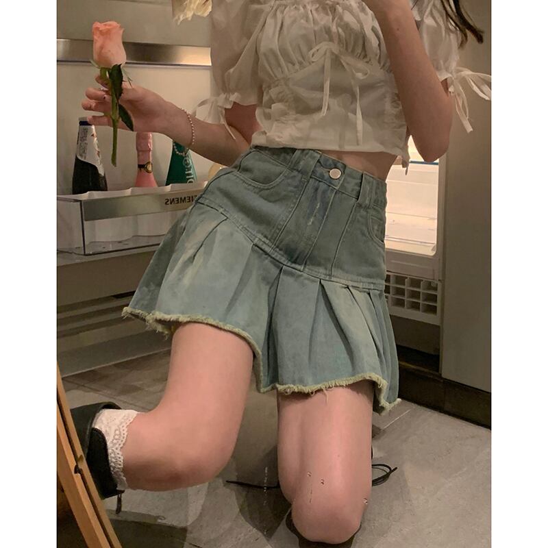 プリーツスカート サマーハイウェストウェスト薄手Aラインショート 夏物 タオタオイ29057250590