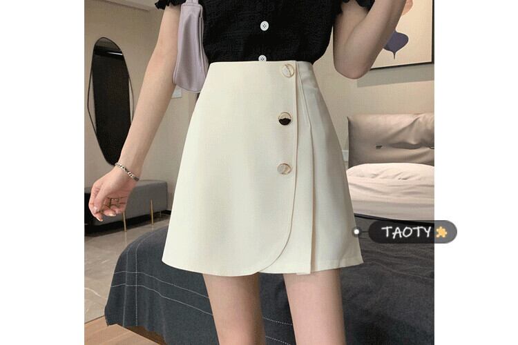 ホワイトスカート ハイウェストウェストAラインサマーショート 夏物 タオタオイ69446106584