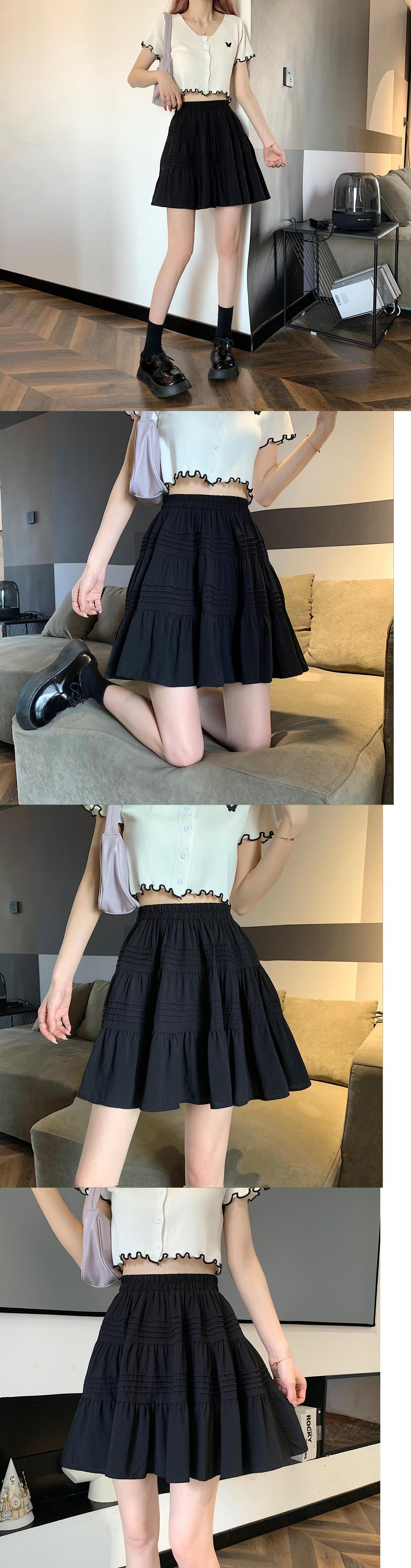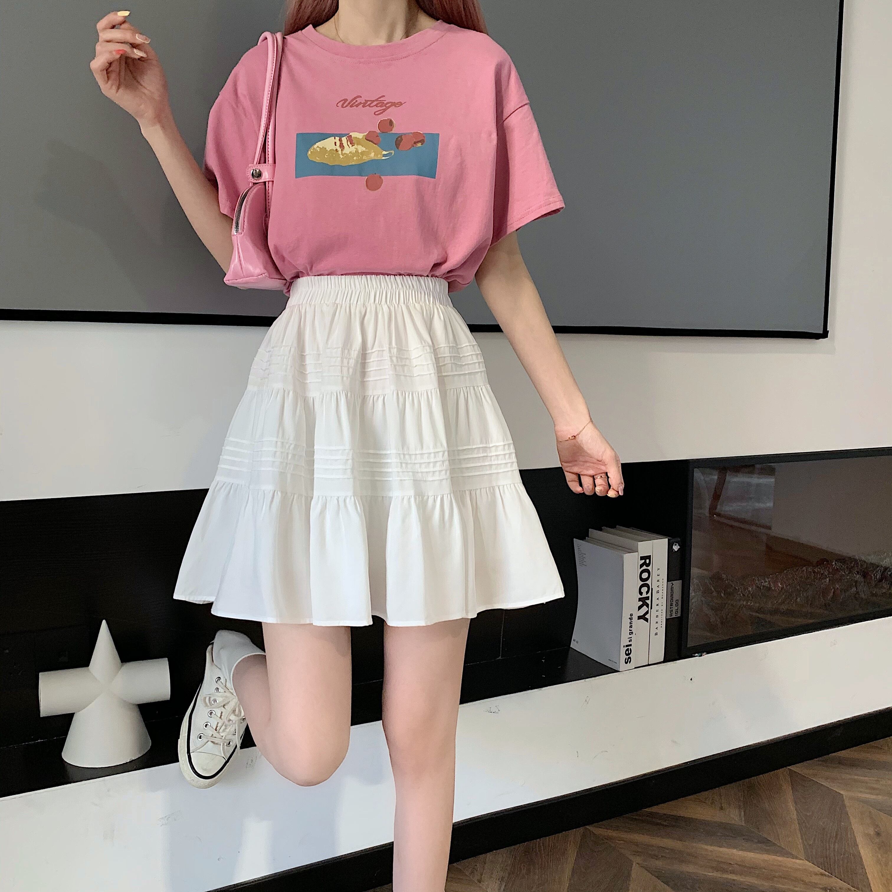 ホワイトスカート サマーハイウェストウェストスリムプリーツAラインショート 夏物 タオタオイ66496950021