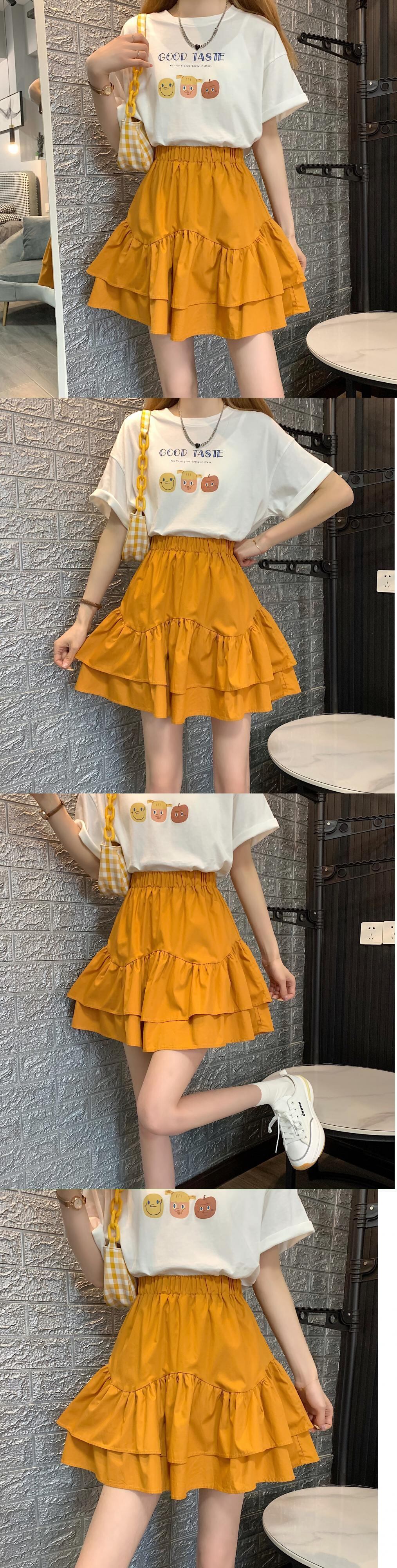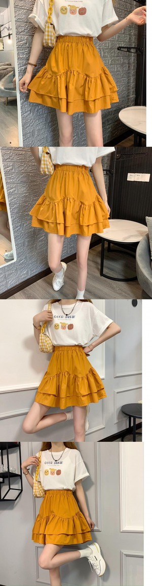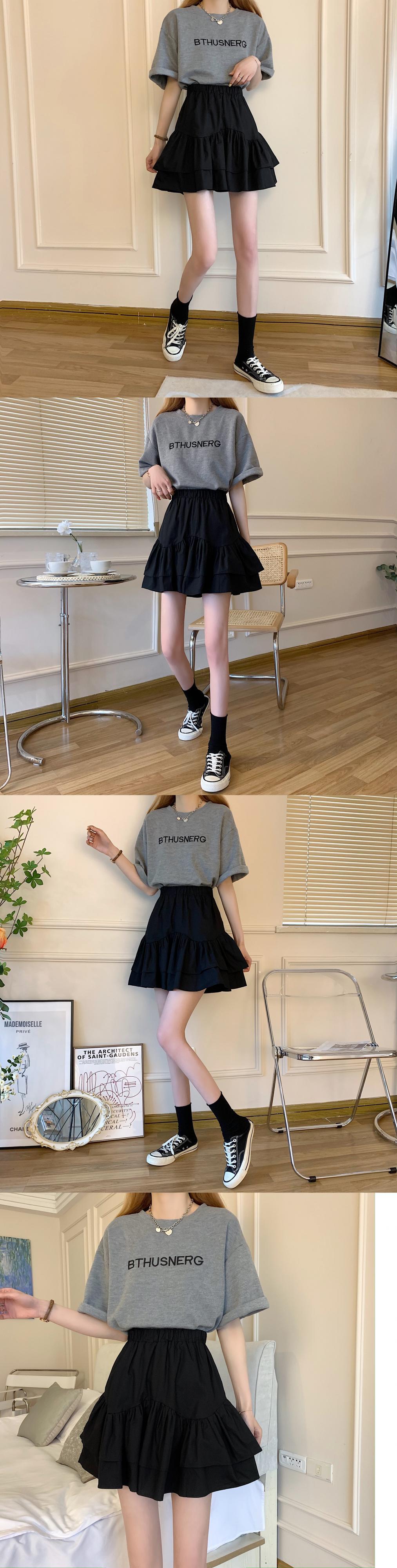 ブラックスカート ハイウェストウェストAラインサマーショート 夏物 タオタオイ85498316912