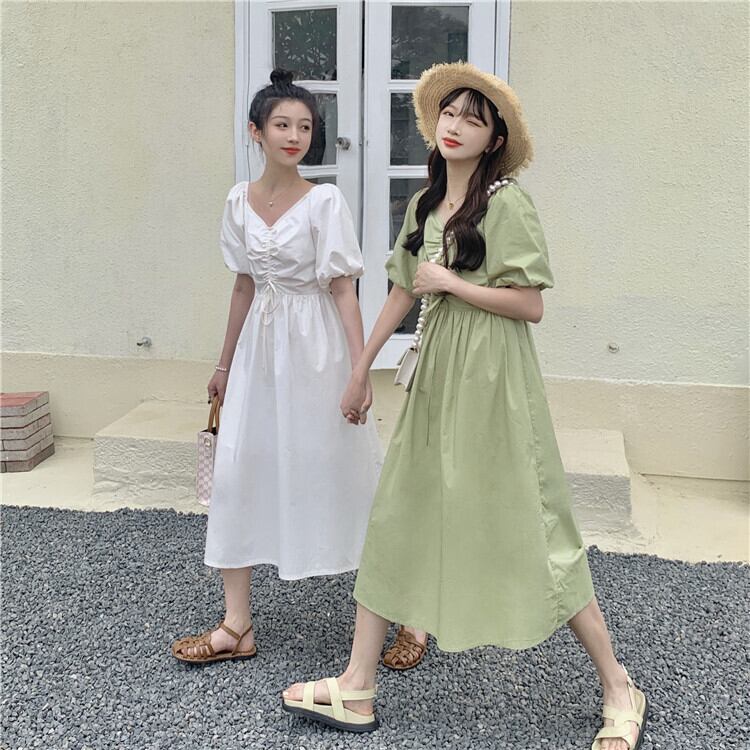 Vネックドレス サマースタンダードスリーブスカート レトロ 夏物 タオタオイ56805855839
