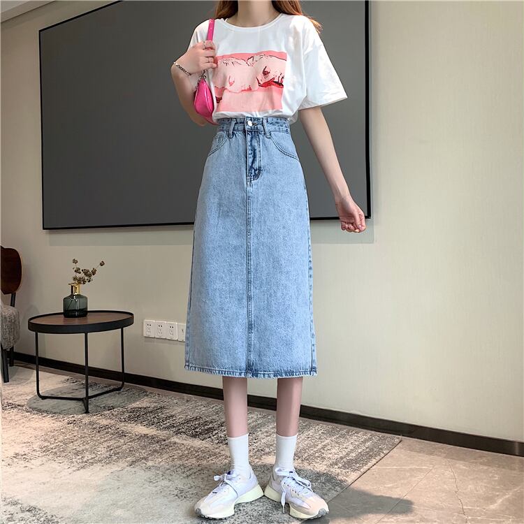 スカート サマーハイウェストウェスト薄手Aライン 夏物 タオタオイ37361119053