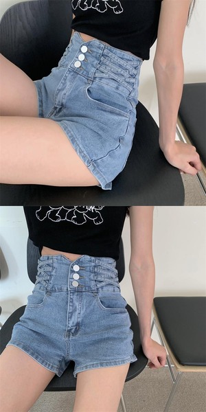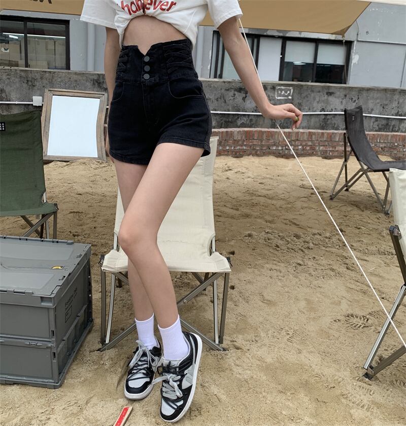 ブラックショーツ サマー薄手ハイウェストウェストパンツ 大人ガーリー スウィート キュート カジュアル 夏物 ブルマー タオタオイ28556002154