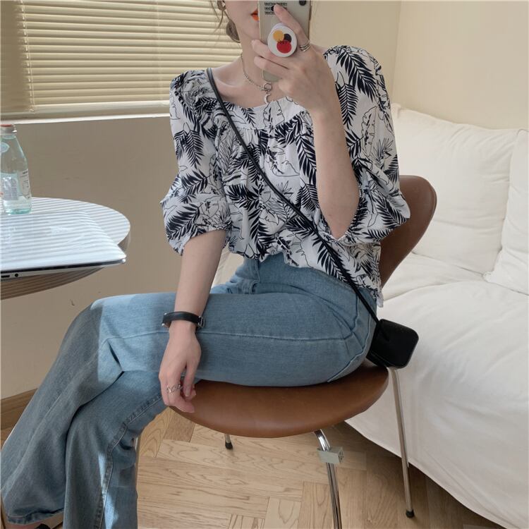シフォンシャツ レディースサマースリーブルーズトップス 夏物 スクウェア タオタオイ99335865819
