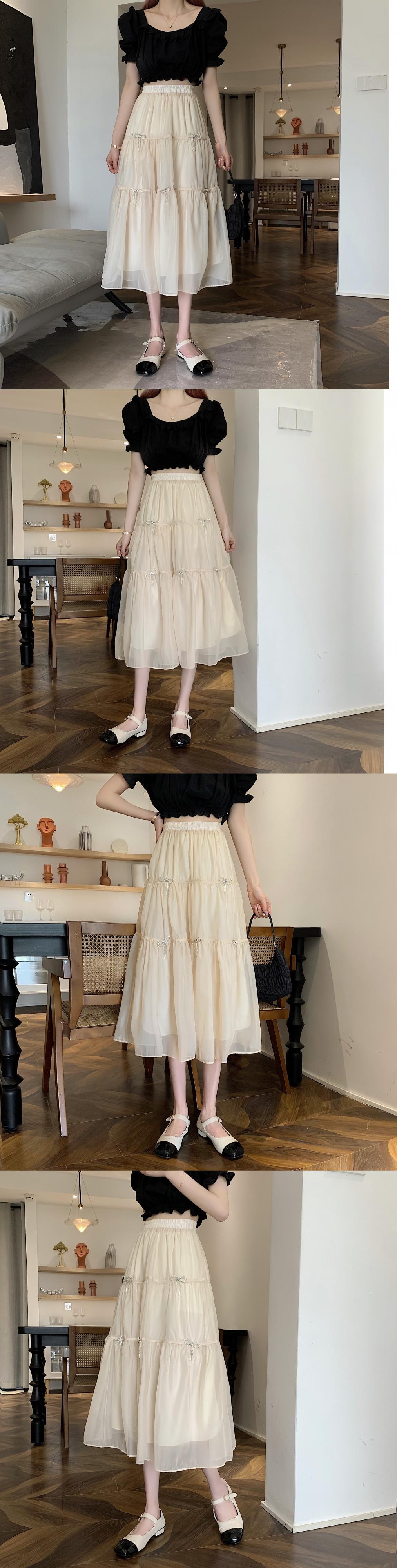 ブラックスカート サマーハイウェスト薄手Aラインリボン 夏物 タオタオイ71722809200