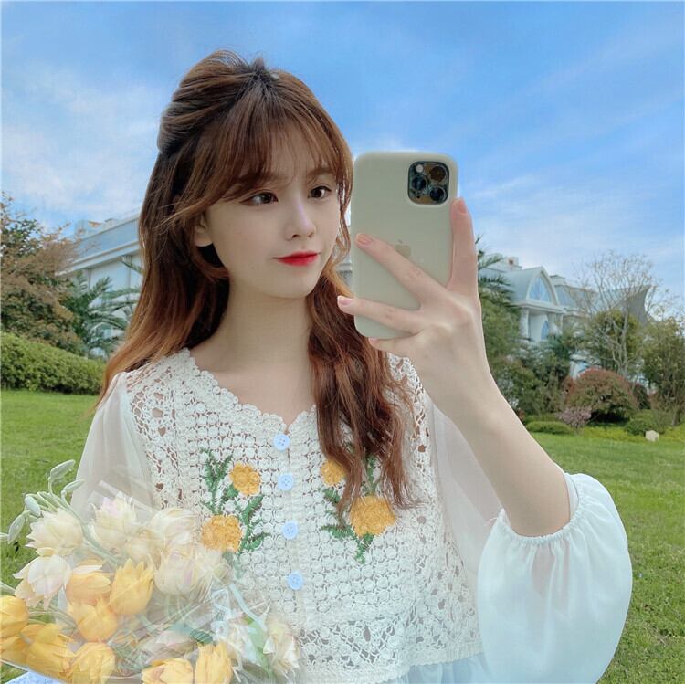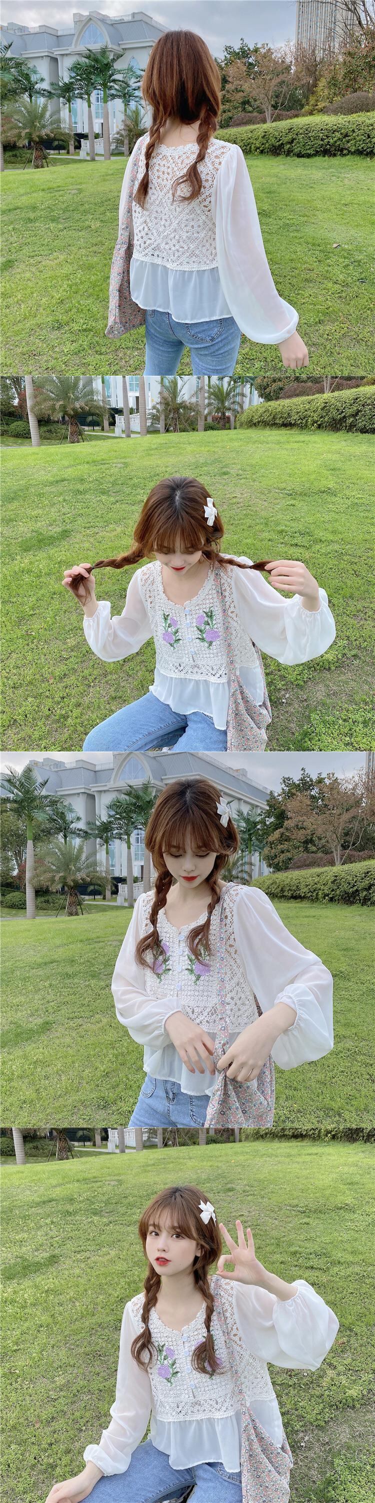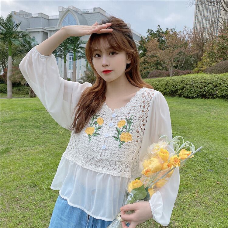 ホワイトシフォンシャツ サマーVネックショートトップス ロング 夏物 タオタオイ17180134744