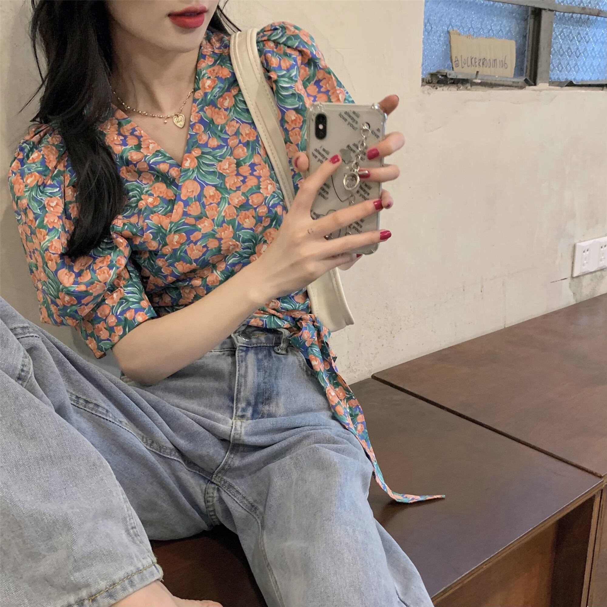 フローラルショートTシャツ サマーウェストトップス 夏物 花柄 タオタオイ90342145978
