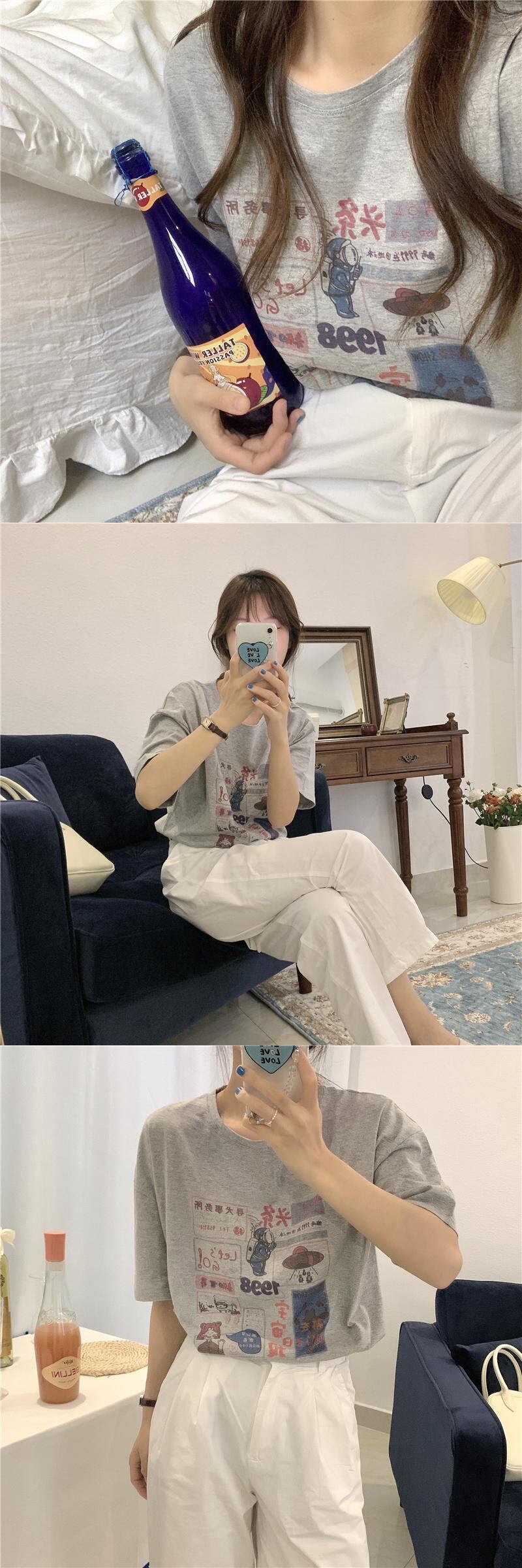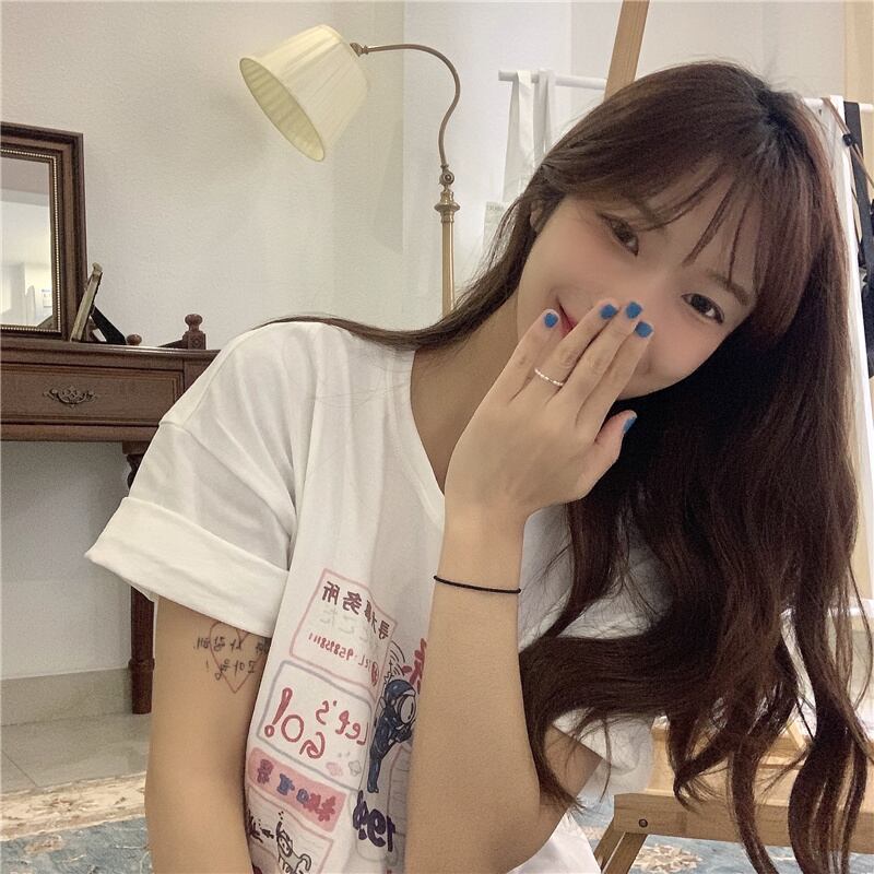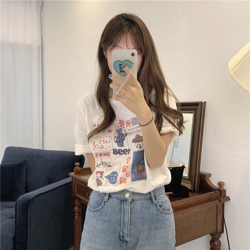 ホワイトTシャツ サマーレッドルーズスタイル かわいい 夏物 タオタオイ42339432415