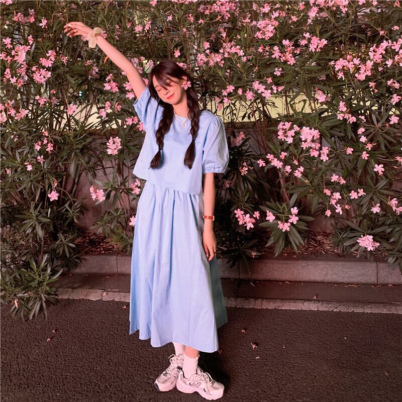 色:ブルートップシングルピース,黄色のシャツワンピース,青いスカートワンピース,黄色のスカートワンピース
