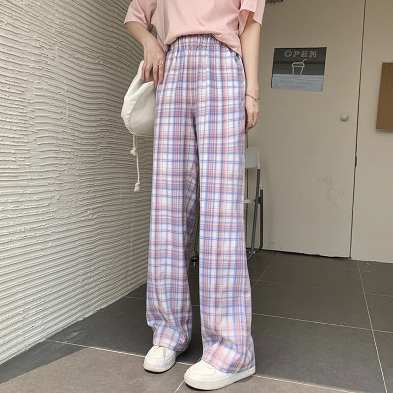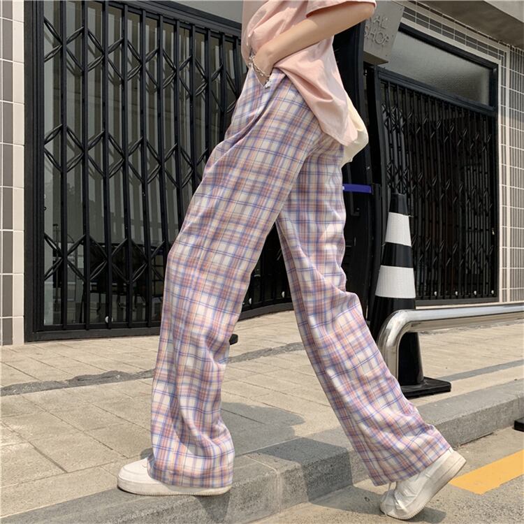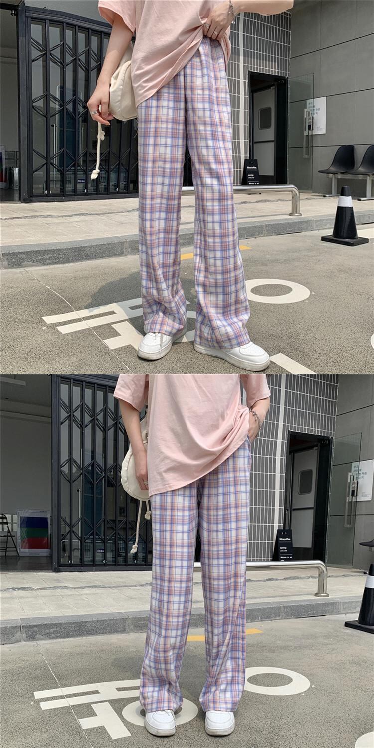 格子柄カジュアルパンツ スプリングオータムルーズハイウェスト 春物 秋物 タオタオイ87565663579