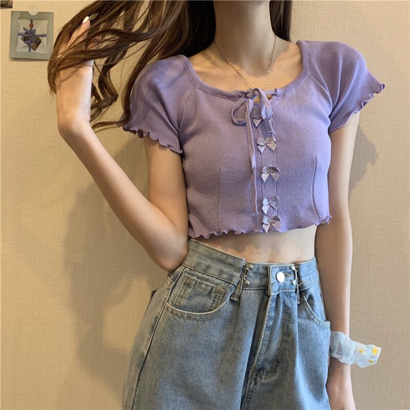 ショートセーター サマーレッドスリムトップス 大人ガーリー スウィート キュート カジュアル 夏物 タオタオイ14513073249