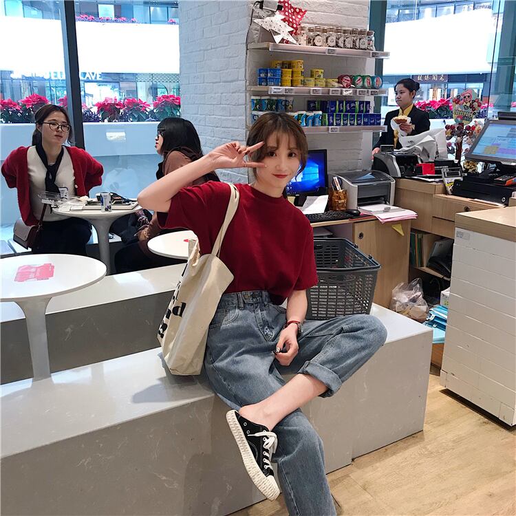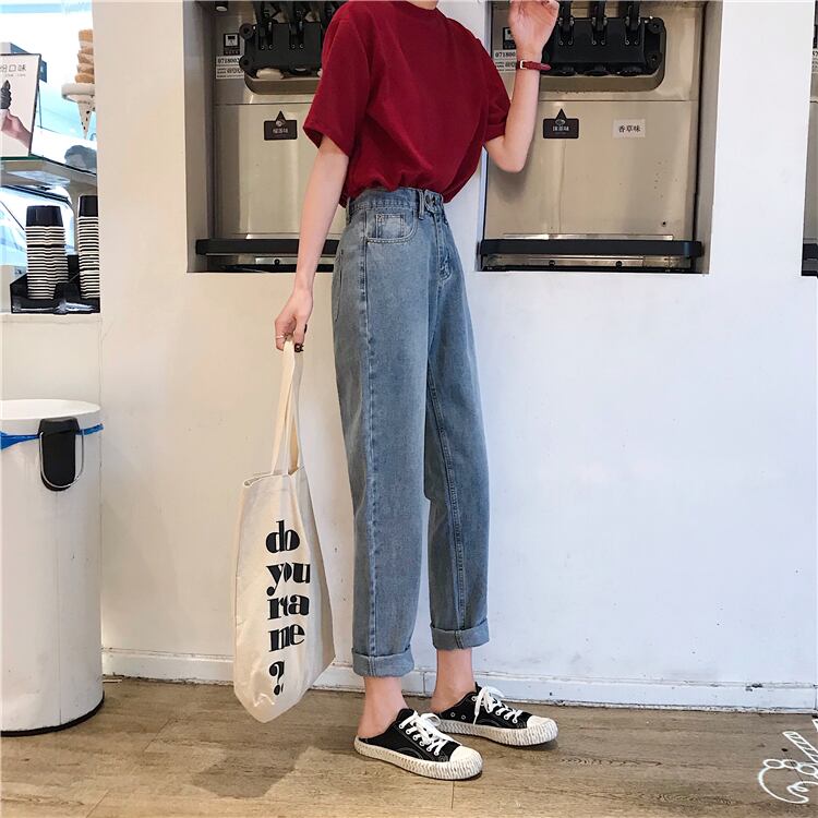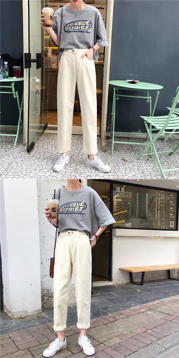 ジーンズ サマースタンダードハイウェストパンツ 薄手ルーズ レトロ 夏物 タオタオイ54084120698