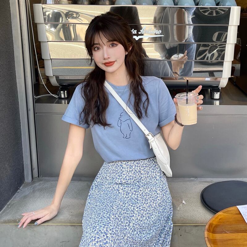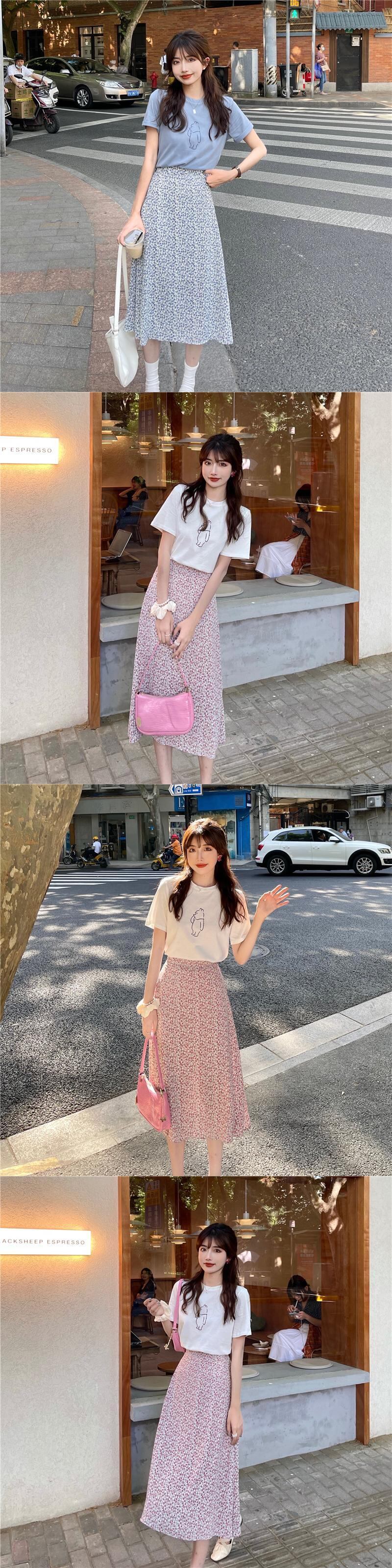 色:ブルーTシングルピース,ブルーフローラルスカートワンピース,ホワイトTシングルピース,ピンクの花柄スカートワンピース